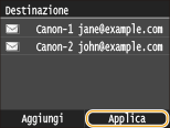 Ripetere i passi 8 e 9 fino a registrare tutte le destinazioni desiderate, quindi toccare <Applica>.