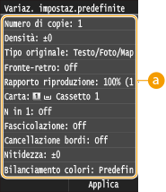 . Se si modificano queste impostazioni predefinite per farle corrispondere alle operazioni che si eseguono frequentemente, sarà possibile eliminare la necessità di configurare le stesse impostazioni ogni volta si eseguano copie.