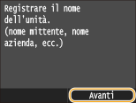 Registrare il numero di fax e il nome dell'unità della macchina. Queste informazioni saranno stampate sulla parte superiore di ogni pagina inviata dalla macchina.
