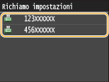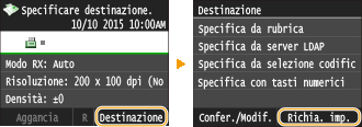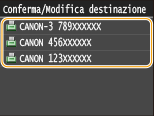 È possibile selezionare una destinazione tra le ultime tre utilizzate. Quando si specifica una destinazione utilizzata in precedenza, la macchina imposta anche le stesse impostazioni fax, come la densità, utilizzate per l'ultimo invio di documenti a tale destinazione.