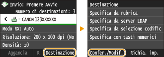 Se si è specificata la Selezione gruppo al passo 2, viene visualizzata l'indicazione "XX destinazione/i". Toccando <Numero di destinazioni> è possibile visualizzare le destinazioni registrate nel gruppo.
