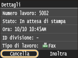 È possibile controllare informazioni dettagliate sui documenti salvati in memoria, compresi numeri di fax del mittente e numero di pagine inviate, nonché eliminare i documenti non necessari.