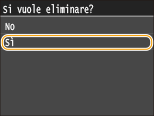 Consente di registrare una password contenente fino a sette cifre. Per registrare una password, immetterla utilizzando i tasti numerici, quindi toccare <Applica>. Immettere di nuovo gli stessi numeri per confermare, quindi toccare <Applica>. Questa password è necessaria quando si modificano le impostazioni per la ricezione in memoria o quando si disattiva la funzione di Ricezione in memoria per stampare tutti i documenti memorizzati. Se non si desidera registrare alcuna password, toccare semplicemente <Applica> senza immettere nulla.