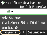 Se un telefono esterno o il ricevitore opzionale è collegato alla macchina, è possibile sollevare il ricevitore invece di toccare <Aggancia>.