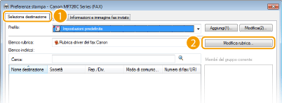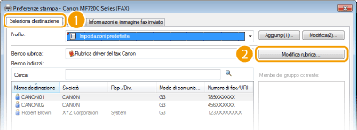 Per modificare o eliminare destinazioni registrate, selezionare una destinazione da [Rubrica] e fare clic su [Modifica] o [Elimina].