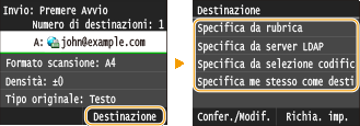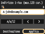 Per istruzioni su come utilizzare la Rubrica, vedere Indicazione dalla Rubrica.