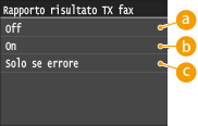 Selezionare per stampare un rapporto risultato TX solo quando si verifica un errore di invio.