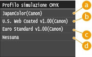 Quando è selezionata un'impostazione diversa da <Nessuna> e la macchina riceve una definizione di spazio colori dipendente dal dispositivo con i colori elaborati dal computer host, la macchina applica anche il <Profilo simulazione CMYK>.