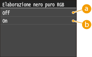 Se è selezionato <Nessuna> per <Profilo sorgente RGB>, l'impostazione Elaborazione nero puro RGB non viene applicata.