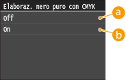 Questa impostazione viene applicata e ha effetto, solo se il nero puro <Testo nero puro> è impostato su <On>.