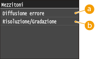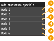 Quando <Diffusione errore> è abilitato per <Mezzitoni> (Mezzitoni), <Modo 1>, <Modo 2>, <Modo 3> e <Modo 4> applicano o stesso effetto sulle stampe di <Modo 6>.