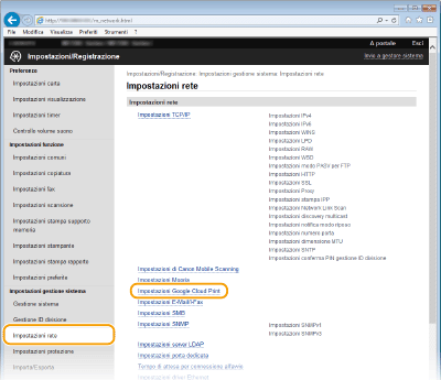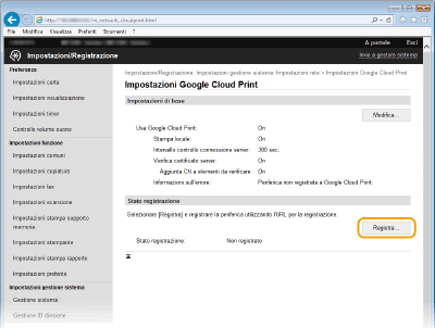 Per stampare con Google Cloud Print, registrare la macchina in Google Cloud Print.