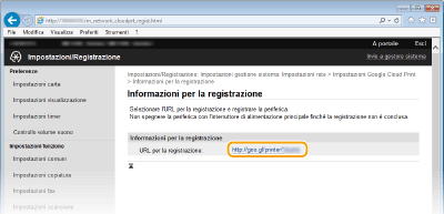 Fare clic sul collegamento dell'URL visualizzato per [URL per la registrazione].