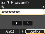 Immettere la chiave di rete utilizzando i tasti numerici, quindi toccare <Applica>.