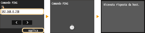 <Subnet Mask> <Indirizzo gateway>.Immettere ciascuna impostazione utilizzando i tasti numerici e toccare <Applica>.