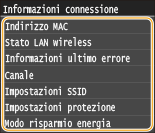 <Info. conn.> e selezionare l'impostazione da visualizzare.