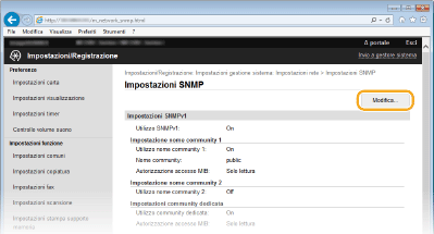 Se entrambe le versioni di SNMP sono disabilitate, alcune funzioni della macchina non saranno disponibili, come il conseguimento di informazioni sulla macchina tramite il driver di stampa.