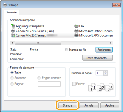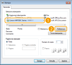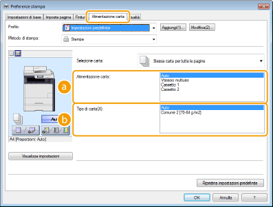 Prima di stampare, specificare formato e tipo di carta caricata nell'alimentazione carta.