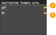 Viene sostituito il formato carta. Tuttavia, se nelle origini carta non è caricata la carta da sostituire, non è possibile eseguire la sostituzione.