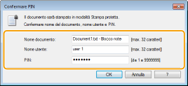 Inserire [Nome documento], [Nome utente] e [PIN], quindi fare clic su [OK].