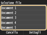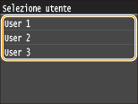Se nella memoria sono presenti documenti protetti di due o più utenti, viene visualizzata la schermata <Selezione utente> prima della schermata <Selezione file>. Selezionare il proprio nome utente.