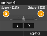Questa impostazione regola la luminosità dell'immagine complessiva. Le impostazioni possono essere impostate tra l'85% e il 115% in incrementi di 5%. Toccare