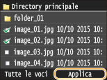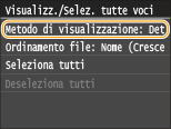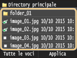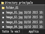 Quando si seleziona <Data/Ora (Crescente)> o <Data/Ora (Decrescente)>, i file vengono ordinati in base a date e ora di modifica dei file.