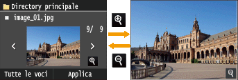 È possibile modificare il metodo di visualizzazione da <Dettagli> (per nomi di file e date di modifica) a <Immagini> (per le anteprime). Visualizzando le immagini in anteprima è possibile controllare il contenuto del file prima di selezionare un file da stampare.