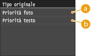 È possibile selezionare il tipo di originale a seconda del'immagine da stampare. Selezionare <Priorità foto> o <Priorità testo>.