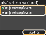 Se viene visualizzata la schermata di autenticazione quando si tocca <Avvio ricerca>, immettere il nome utente della macchina e la password registrati nel server LDAP, quindi toccare <Applica>.