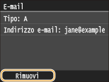 Prima di selezionare <Confer./Modif.> al passo 1, è possibile toccare  /  per passare alle destinazioni specificate. Visualizzare la destinazione da eliminare, quindi premere  .
