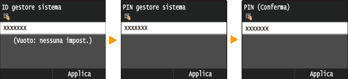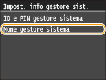 ![]() Sulla MF729Cx, l'ID gestore sistema e il PIN predefiniti sono "7654321". È consigliabile cambiare questa impostazione per maggiore sicurezza.