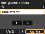 Immettere fino a 32 caratteri per il Nome gestore sistema, quindi toccare <Applica>. Immissione di testo