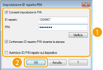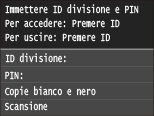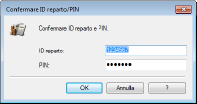 [Confermare ID reparto/PIN durante la stampa]/[Conferma ID reparto/PIN prima di inviare fax]