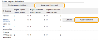 Se si desidera azzerare i conteggi, fare clic sul collegamento di testo corrispondente in [ID divisione] quindi fare clic su [Azzera contatore]