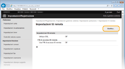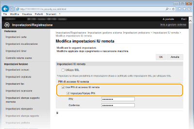 Selezionare la casella di controllo [Usa PIN di accesso IU remota] e impostare il PIN.