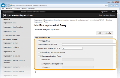 Selezionare la casella di controllo [Utilizzo Proxy] e specificare le impostazioni richieste.