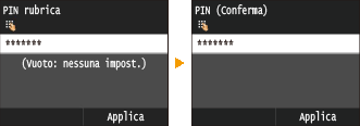 La Rubrica può essere impostata in modo da richiedere agli utenti di immettere un PIN per aggiungere nuovi dati o modificare quelli esistenti. L'impostazione di un PIN per la Rubrica riduce il rischio di invio di documenti a destinatari non voluti, perché solo gli utenti a conoscenza del PIN possono modificare la Rubrica.
