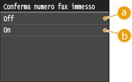Visualizzazione della schermata per la conferma del numero di fax (MF729Cx / MF728Cdw / MF628Cw)