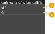 Quando si utilizzano numeri di composizione codificati per specificare le destinazioni, è necessario ricordare quale destinazione (o quale gruppo) sia registrata con un determinato numero di composizione codificato. Se non si ricordano correttamente tutti i numeri, sarà possibile inviare i documenti a destinazioni non previste. È possibile evitare l'invio di dati a destinatari indesiderati configurando la macchina in modo da visualizzare i dettagli del numero di composizione codificato selezionato/immesso come destinazione di invio prima di inviare i documenti.