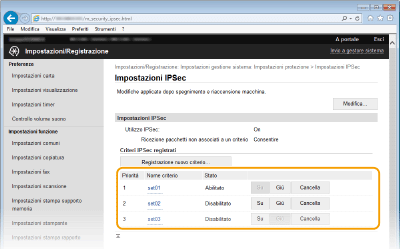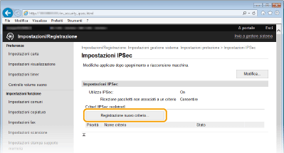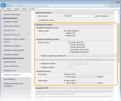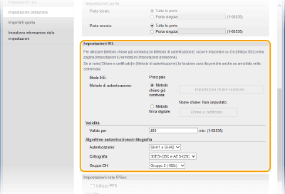 Specificare le impostazioni [Valido per] e [Autenticazione]/[Crittografia]/[Gruppo DH].