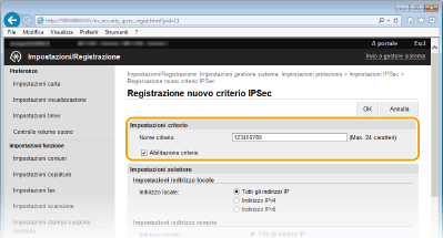 Nella casella di testo [Nome criterio] immettere fino a 24 caratteri alfanumerici per un nome utilizzato per l'identificazione del criterio.