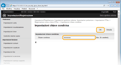 Immettere fino a 24 caratteri alfanumerici per la chiave già condivisa e fare clic su [OK].