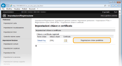 Fare clic su [Registrazione chiave predefinita] a destra della coppia di chiavi che si desidera utilizzare.