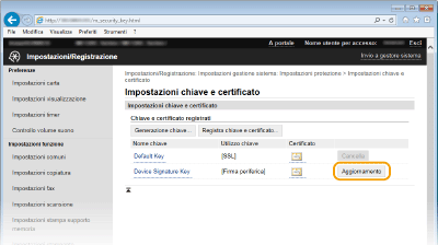 Fare clic su [Aggiornamento] a destra della chiave di firma dispositivo.