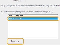 Löschen von IP-Adressen aus den Ausnahmen Wählen Sie eine IP-Adresse, und klicken Sie auf [Löschen].