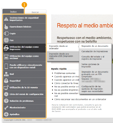 Muestra el índice del e-Manual.
