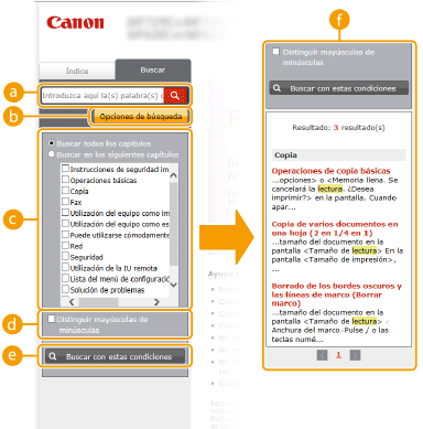 Muestra los resultados de búsqueda de las páginas que contienen las palabras clave especificadas. En los resultados, localice la página que esté buscando y haga clic en el título del tema de la página. Si los resultados no pueden mostrarse en una página, haga clic en