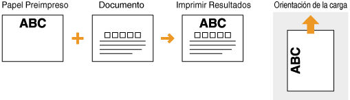 Esta sección describe principalmente cómo cargar papel preimpreso con la orientación adecuada y con la cara correcta hacia arriba. Para consultar una descripción del procedimiento general para cargar papel en el casete de papel o en la ranura de alimentación manual, consulte Carga de papel en el casete de papel o Carga de papel en la ranura de alimentación manual.