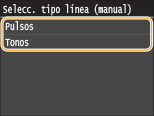Siga el procedimiento que se indica a continuación para configurar el tipo de línea telefónica. Si no está seguro del tipo de línea telefónica que utiliza, póngase en contacto con su compañía telefónica. <Seleccionar tipo línea> podría no estar disponible, en función del país en el que esté utilizando la impresora.